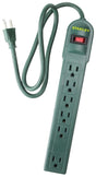 The Stanley PowerMax 5 + 1 Green Safety Power Strip features an On/Off switch and a built-in circuit breaker.
