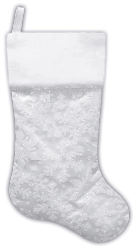 20.5" White & Silver Glitter Snowflake Christmas Stocking