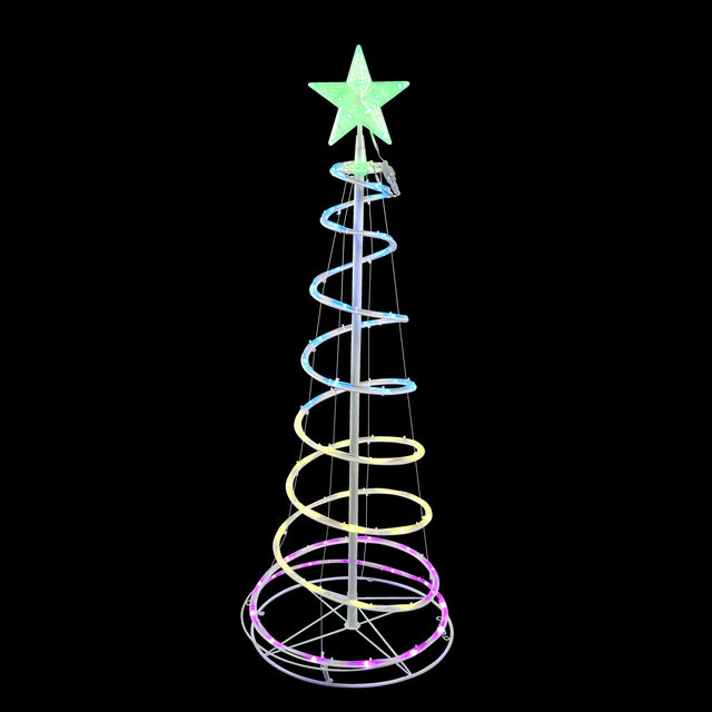 Show off your love for all things Christmas with this RBG Spiral Christmas Tree. This unique outdoor decoration is pre-lit by color changing lights. Effortlessly add color to your winter wonderland this year and for many years to come with this tree.