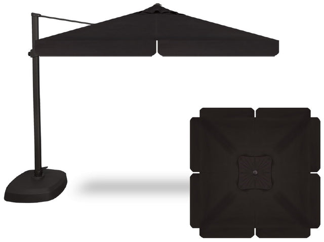 10' Square Cantilever Umbrella in a Black Frame with a Black Canopy with Base