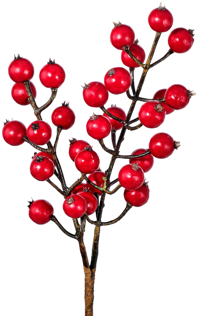 This Waterproof Red Winter Berry Pick Spray will give your floral designs a pop of color. A collection of thin wrapped wire stems are bound together to present veering sprigs of glossy, plump winter berries in a rich red color, joining flexible meandering branches. Bend and curve its wiry bases to create the perfect look. Feel free to cut and and separate these stems, limbs and berries for further versatility!