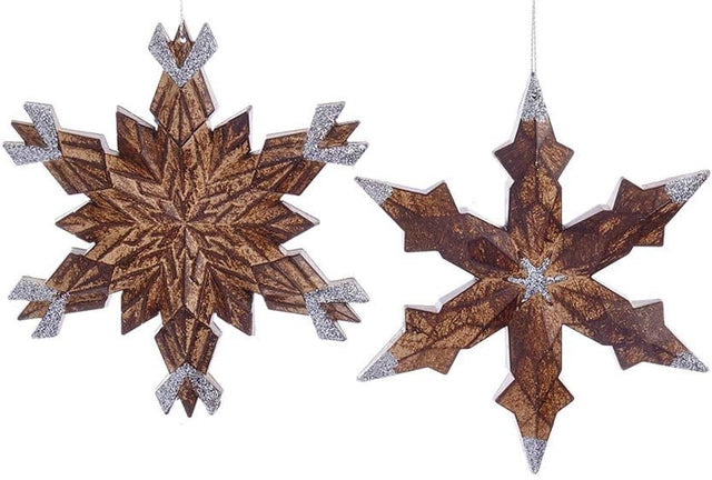 Look at this unique, shatterproof Snowflake Ornament! This ornament features a 6-point snowflake designed to look like wood. It has groove marks at each corner that make up an arrow accent and is embellished with glitter. Perfect gift for Christmas, a birthday or even a house warming gift this year!