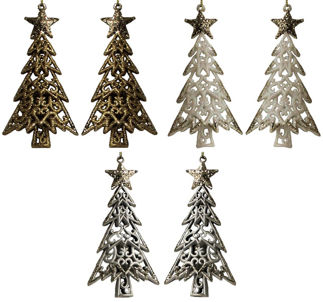 2-Pack of Shatterproof Glitter Tree Shaped Ornaments (Gold/White/Silver)