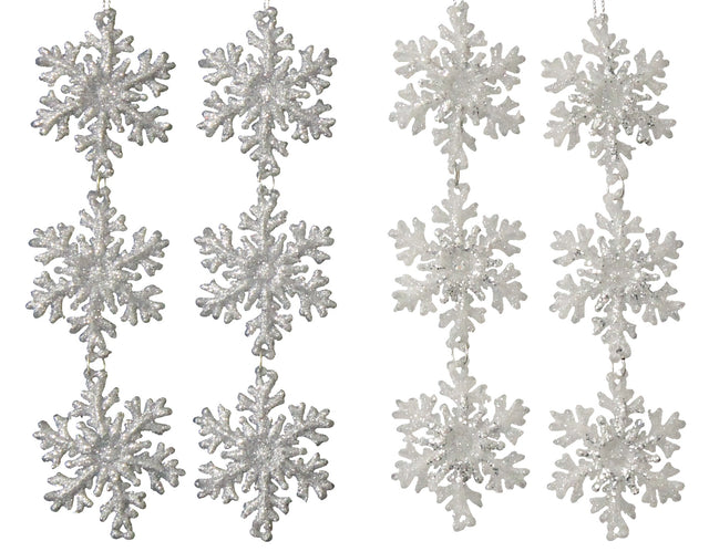 2-Pack of Silver/White Glitter 3-Tier Snowflake Ornaments