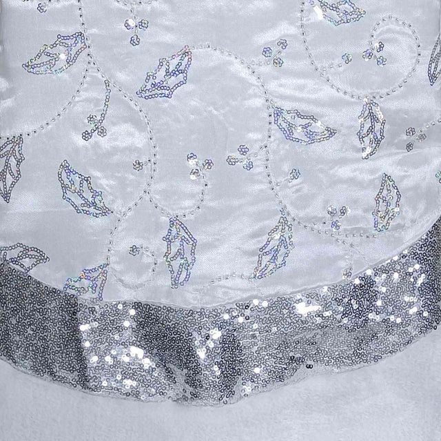 You take the time to decorate the top of your tree, but what about the bottom? Polish off your tree and set the stage for your presents with this beautiful Silver Glitter Tree Skirt.