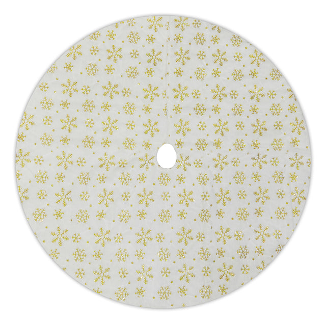 48" Gold and White Snowflake Embroidered Christmas Tree Skirt