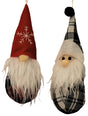- One gnome is wearing a white and black buffalo check plaid Santa hat
