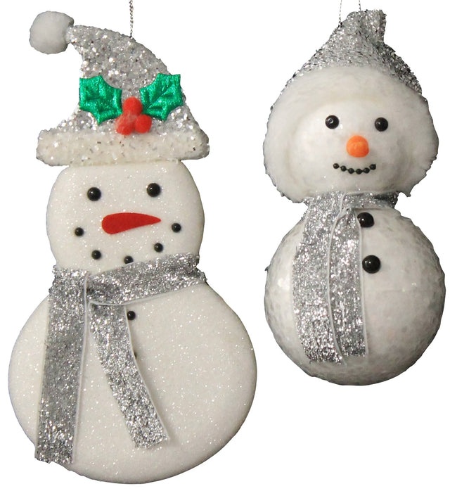 Silver & White Glitter Snowman Ornaments
