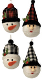 Crafted with soft, plush fabrics, these cute Snowman/Santa Head Ornaments depicts classic holiday characters in seasonal garb.