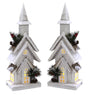 15" Battery-Operated Lighted Wooden Church with Pine & Berry Accent With Timer