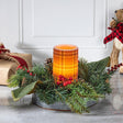 Red Plaid Centerpiece Battery-Operated LED Holder