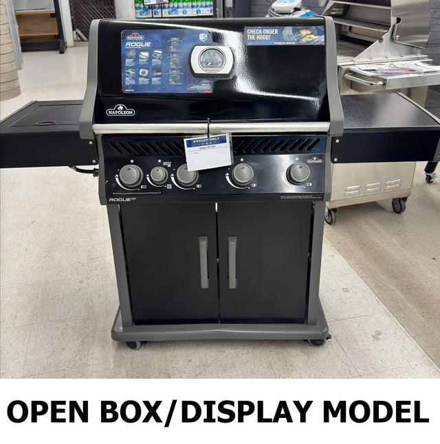 The Napoleon Rogue® XT 525 Grill with Infrared Side Burner in Black is a large and durable, easy to maintain grill. Featuring four main burners, stainless steel sear plates, cast grids and a high top lid, this grill has everything you need for gourmet meals. Sear restaurant-style steaks on the integrated Sizzle Zone™ side burner while generous side shelves provide plenty of prep space.