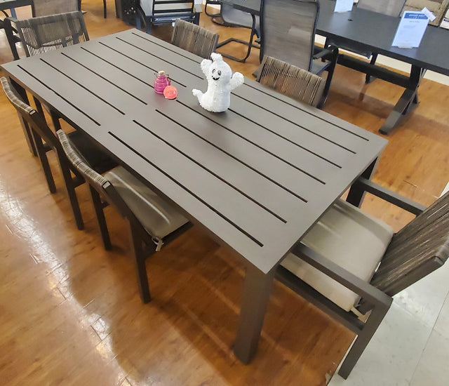 - Set includes: (2) Armchairs, (4) Side Chairs and (1) Dining Table