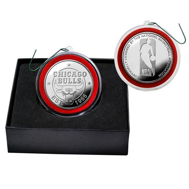 No basketball fan's home is complete without this Highland Mint NBA Chicago Bulls Silver Coin Ornament Collectible.