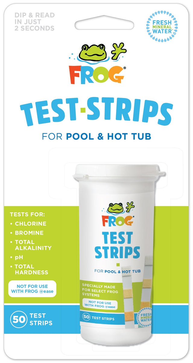 - Regular test strips will NOT show the ideal chlorine or bromine range used with FROG® products
