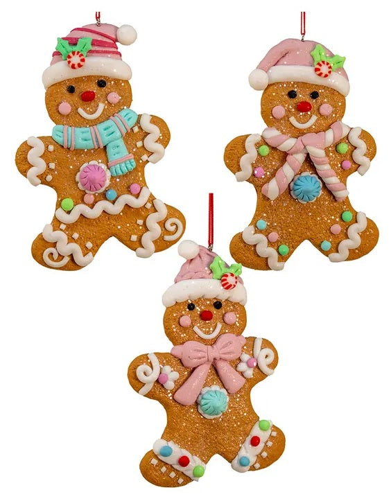 Add a sweet and unique twist to your holiday décor with one or all three of these Pastel Gingerbread Man Ornaments. Crafted in soft, pastel hues, each gingerbread man features delicate frosting details and candy-like accents, bringing a fresh, whimsical look to the classic gingerbread design.