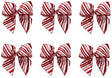 6 Pack of 2-Loop White Satin Bows with Red Glitter Candy Cane Stripes