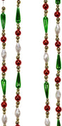 Add the finishing touches to your Christmas tree or wreath this holiday season with our Gold, Red, Green and White Beaded Garland. The green beads are a long teardrop shape, the white beads are an oblong-faceted design and the red and gold beads are various round sizes. Perfect for that unique look you've been going for!