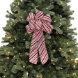 8" x 17" White Satin 6-Loop Christmas Bow with Red Glitter Candy Cane Stripes