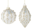 This stunning Glass Christmas Ornament features gold glitter stripes dotted with a large pearl surrounded by tiny pearls! Use one or both of these elegant ornaments on your Christmas tree this year.