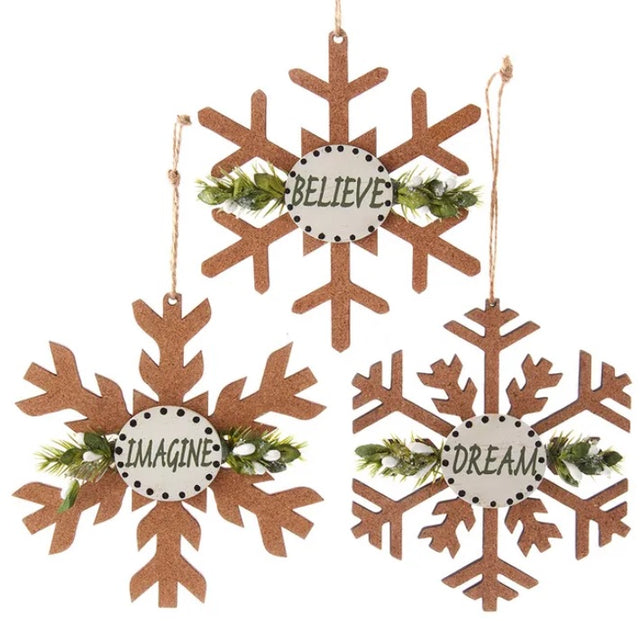 4.5" Wooden Cork Sage Snowflake with Sentiment Ornament