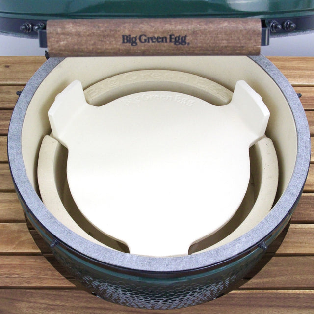 - Designed to allow heat to efficiently radiate within the EGG dome, while preventing the flames and heat from over-cooking the food