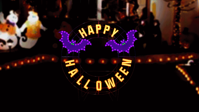 - Halloween wreath with illuminated message: "Happy Halloween"