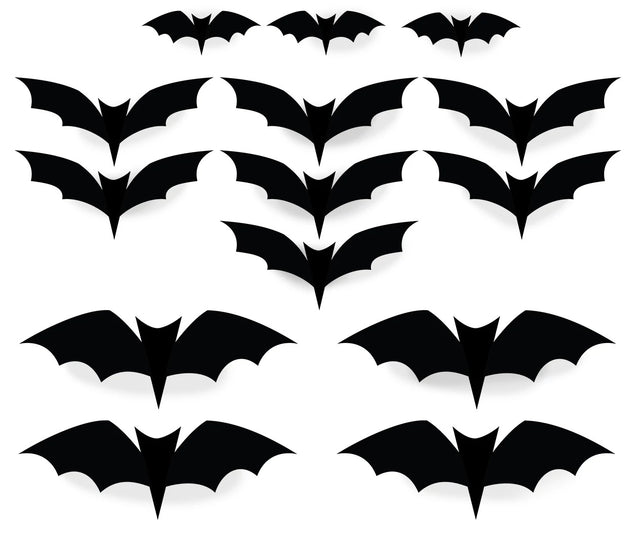 Decorate your home in a flock of bats using these 24 PVC Bats! Each bat in a large, medium or small size features a dimensional design for added detail, making this set perfect for decorating a haunted entryway, living space or kitchen.