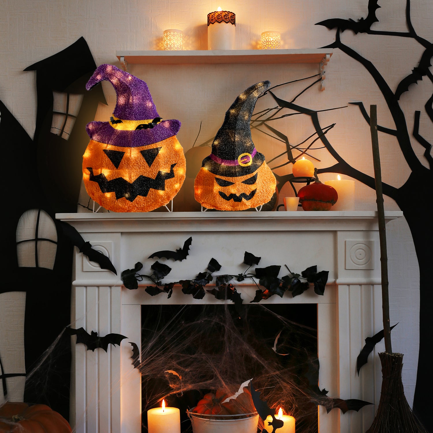 Set of 2 Lighted Jack-O-Lantern Decorations