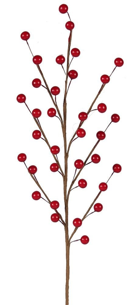 Use this charming Berry Spray in your next decorative display to add a pop of color. This spray features glistening red berries throughout, connected to wood-like stems and branches, making this spray a versatile piece! This spray can be used alongside a number of floral enhancements, or even other berries. Use this spray in a decorative pot or planter, or even in a wreath display to show off your creative abilities!