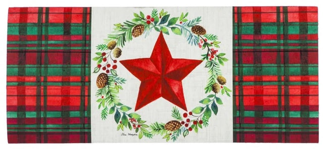 This lovely Sassafras Switch Mat features red and green buffalo plaid on both sides with a red star in the middle surrounded by a festive wreath. This switchable insert is made for placement in Evergreen's Rubber Switch Doormat Frame. Search for an Evergreen Rubber Doormat Tray to pair with this switchable doormat insert for a new look year-round!