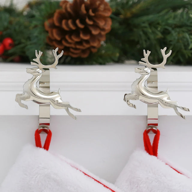 The Original MantleClip® Stocking Holder with Removable Metal Holiday Icons, 2 Pack - Silver Reindeer