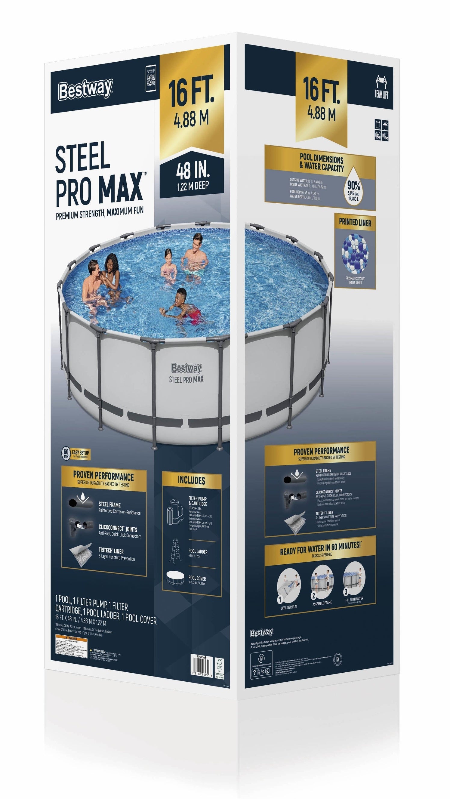 Bestway Steel Pro MAX 16' x 48" Frame Above Ground Swimming Pool Set
