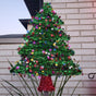 - 2-dimensional green tinsel Christmas trees with multi-colored tinsel