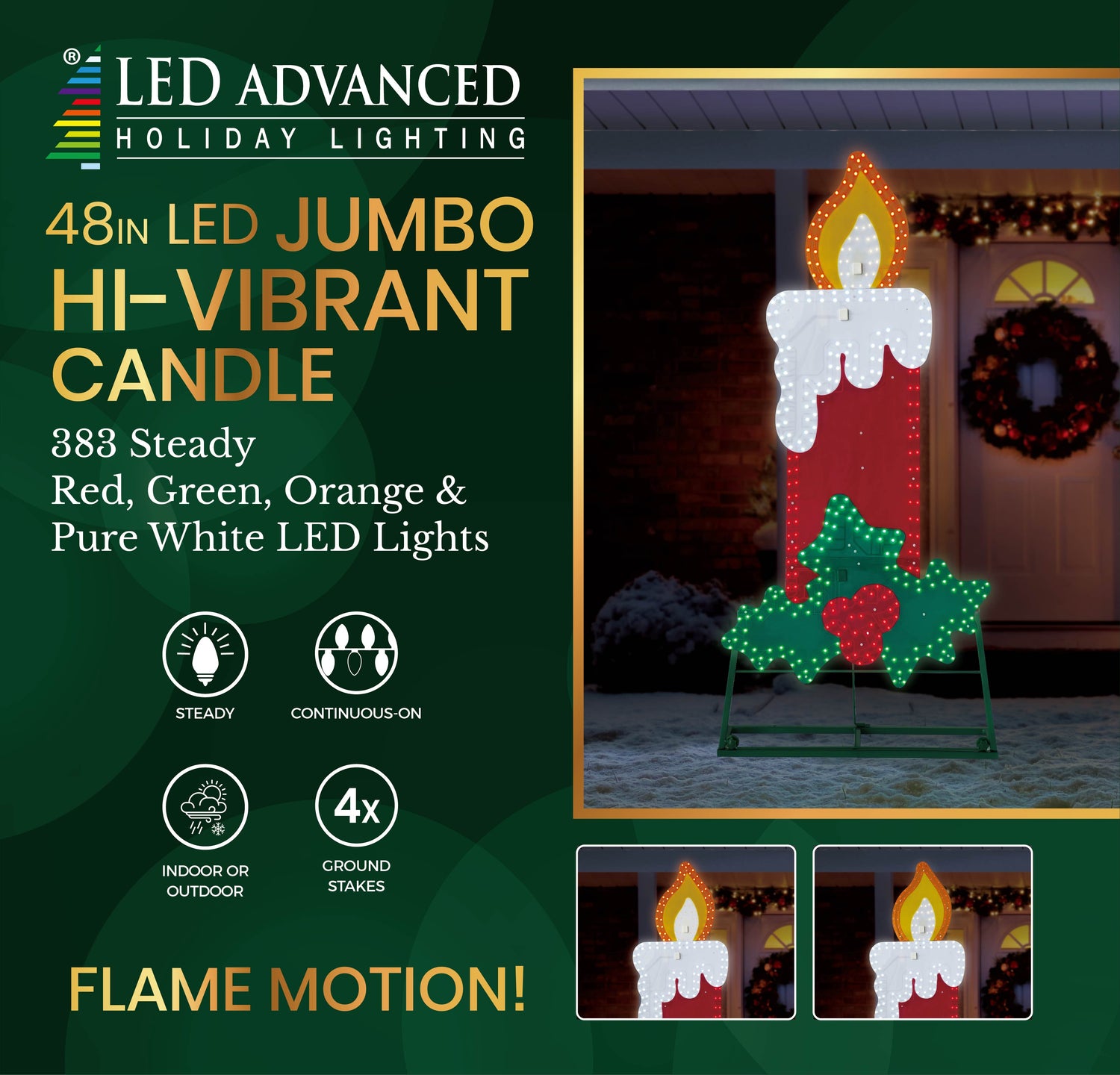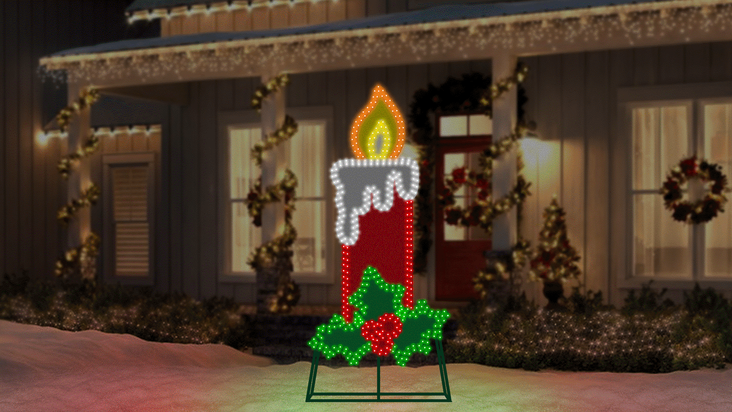 Christmas is sure to be merry and bright with this beautiful LED Candle Decoration! Illuminated with an array of colorful twinkling lights, the silhouette can be hung or staked for eye-catching yard decor.