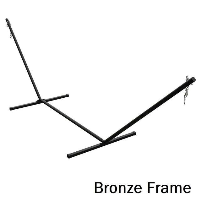 This 2-Point 15' Center Beam Hammock Stand by Algoma Net Company is made especially for Algoma's 2-pt 13' hammocks, and offers an attractive support if your yard doesn't have a tree on which to hang your hammock, or if you want your hammock on the patio or indoors. A hammock frame also adds portability to your hammock.