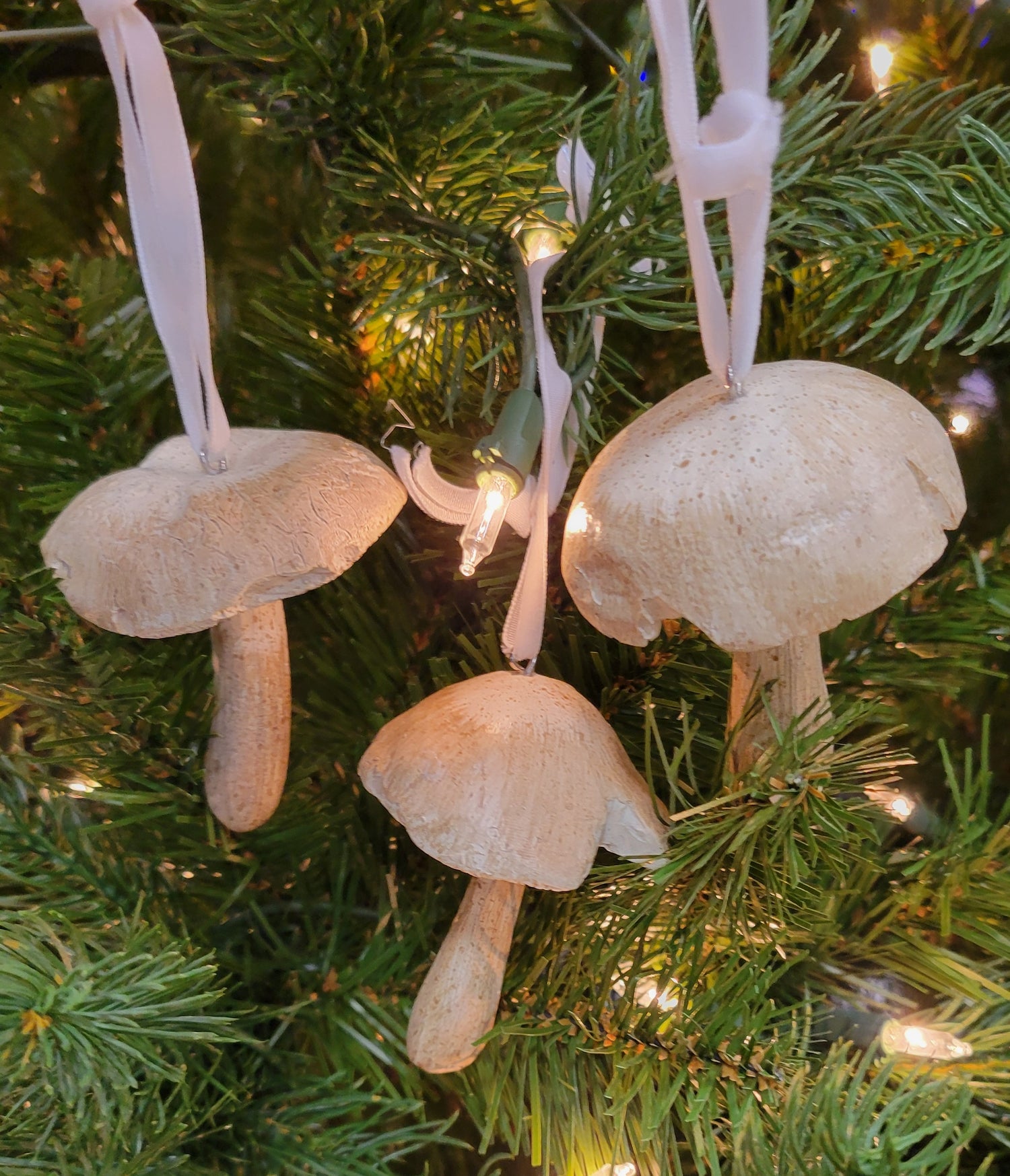 Perfect for hanging on Christmas trees, this neutral mushroom ornament can also be used to decorate wreaths, garlands or as part of a woodland-themed centerpiece, adding a touch of natural charm and elegance to any space.