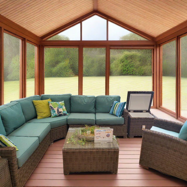 Beautiful and versatile, the Bella Wicker Deep Seating Sectional Patio Set combines comfort with adaptability. The teal fabric and brown wicker complement each other perfectly. Add in your own toss pillows and accessories to make this set a true representation of your style.