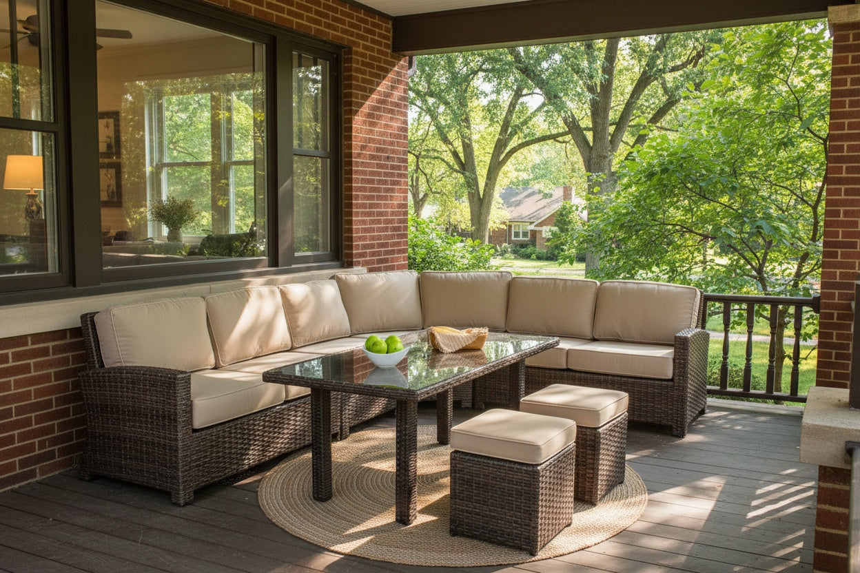 The Lenox Deep Seating Sectional Sets are designed to add comfort and style to your backyard. The resin wicker material looks and feels like traditional wicker, but while traditional wicker cracks, splinters, fades and breaks down with prolonged exposure to outdoor elements, resin wicker is unfazed. Plush cushions cover the frames and offer supportive, comfortable long-term seating.