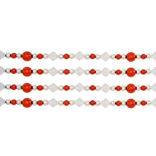 9' Red, White and Silver Iridescent Beaded Hand-Strung Bead Garland