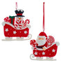 Add a festive touch to your holiday décor with this Santa/Snowman Sleigh Ornament. This sleigh ornament is crafted from red and white claydough for a classic holiday look. Perfect hanging decoration for your tree, mantel or window.