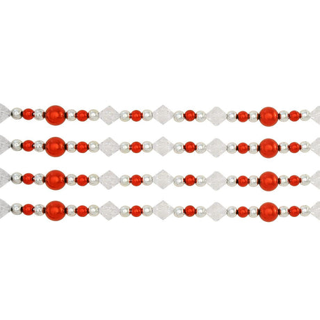 9' Red, White and Silver Iridescent Beaded Hand-Strung Bead Garland