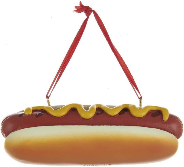 Have a tasty Christmas this year with our Hot Dog Ornament. Featuring a classic hot dog with grill marks, a bun and topped with mustard, this quirky hanging decoration would be the perfect addition to your food themed holiday décor or Christmas tree. Would also make a great gift for that foodie in your life!