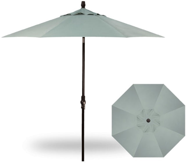This easy-to-use 9' Collar Tilt Market Black Frame Spa Canopy Umbrella features a rotational tilt "collar" that operates from just above the crank on the umbrella's pole. This unique feature allows you to direct shade from one spot to any desired angle and direction. The 1.5" diameter pole and frame is all aluminum and is powder-coated to prevent weathering.