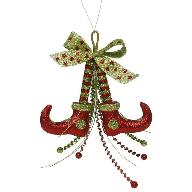 Create a little bit of Christmas magic in your Christmas decoration arrangements with this festive and whimsical Glitter Foil Elf Leg Ornament. Adorn your Christmas tree, your kitchen, your bathroom or in a window!
