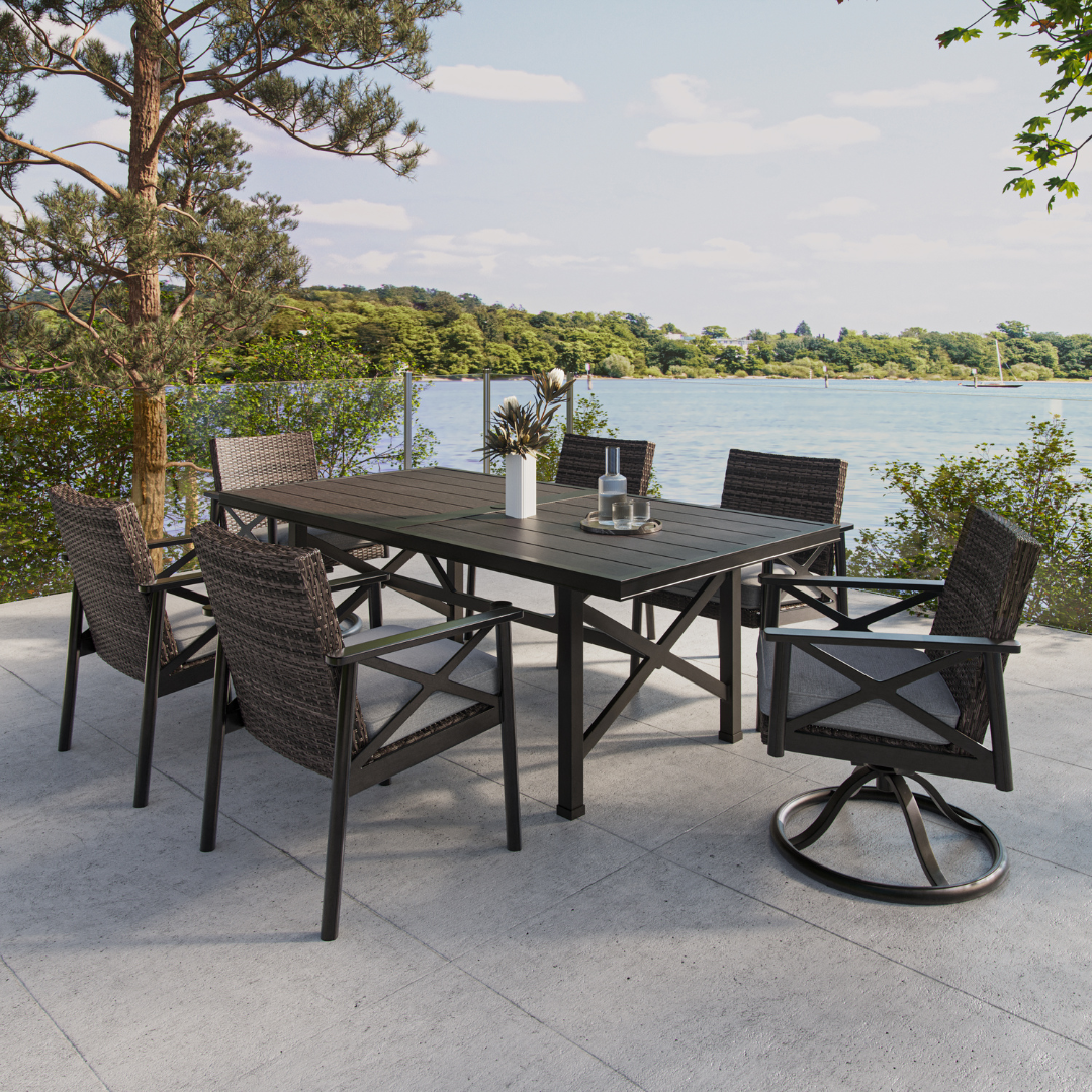 Why choose aluminum patio furniture? Aluminum is an extremely strong and durable metal with low maintenance. Aluminum does not rust , as compared to steel furniture. Because aluminum is such a low maintenance material, it is considered a smart purchase.