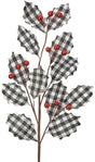 Celebrate the Christmas season by adding this Buffalo Check Holly Stem to your holiday display! Featuring black and white buffalo check petals, along with red berries. This beautiful holly leaf and berry spray will give a country rustic look to your holiday decorations!