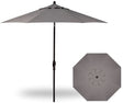 The deluxe crank 9' Auto Tilt Market Black Frame Charcoal Canopy Umbrella Thin Pole is our best-selling style. This umbrella has a multiple-tilt feature that utilizes the crank handle to raise/lower the umbrella and adjust the angle of the canopy for the desired shade.
