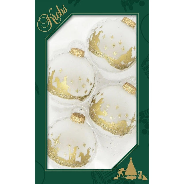 Set of 4 Gold Bethlehem Frosted Glass Ornaments