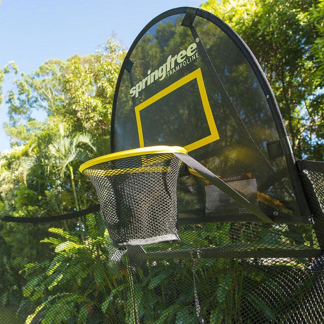 Use the Springfree FlexrHoop and ball to practice and perfect your trampoline slam dunk! Like our trampolines, no hard edges, as it's been designed to be flexible and soft. Great for kids (and adults) who want to practice their slam dunk!